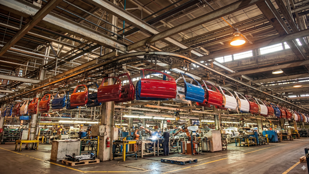 Transportadores Aéreos (Overhead)Los Transportadores Aéreos (Overhead) son un sistema donde la carga no va apoyada sobre el suelo o una mesa, sino que viaja suspendida del techo o de una estructura elevada.